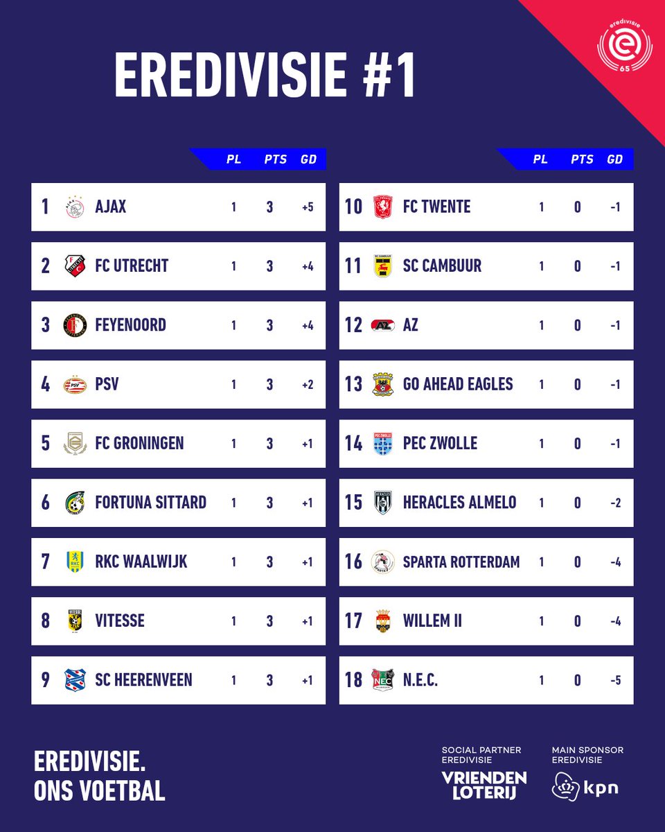 Eredivisie On Twitter De Stand Na Speelronde 1 Onsvoetbal